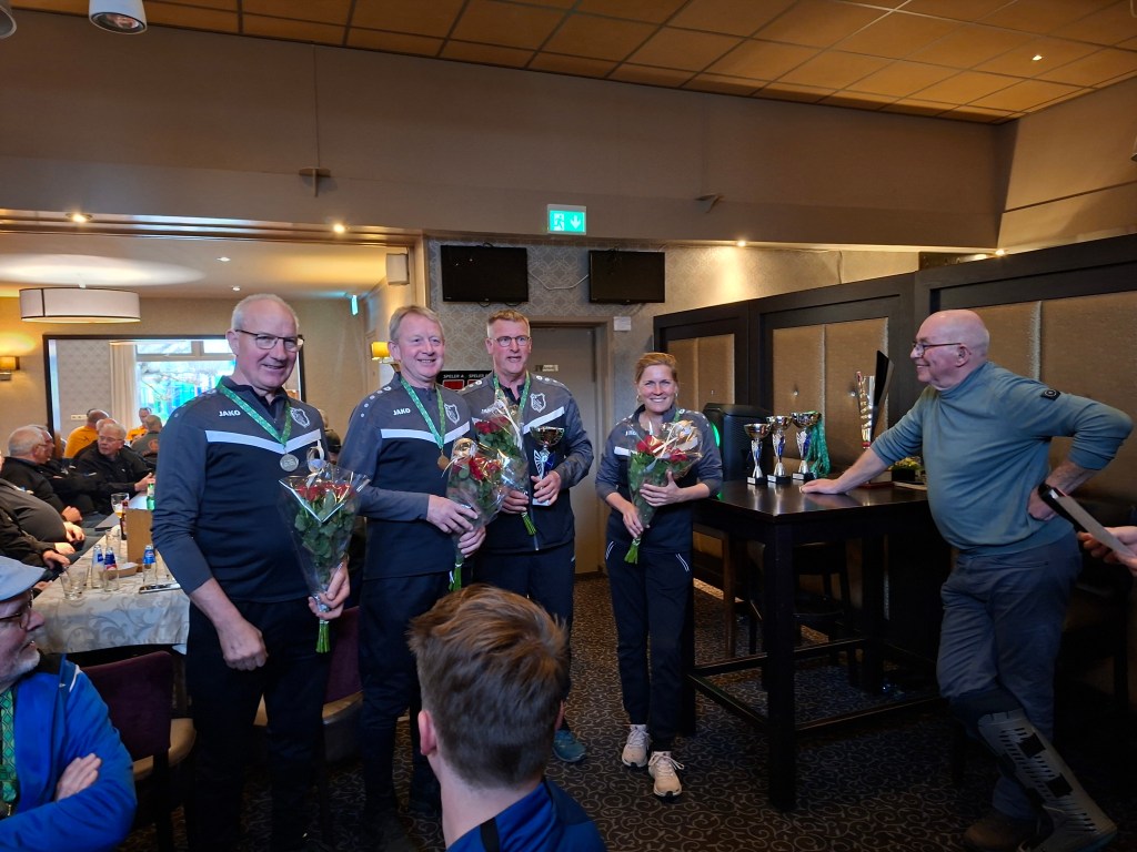Op zaterdag 22 november vond het 7e Sinterklaas klootschiettoernooi plaats bij onze vereniging. Onder een vriendelijke winterzon streden 13 enthousiaste teams – een mix van ervaren klootschieters en recreanten – om de felbegeerde prijzen. De deelnemers schoten hun kloot over twee parcoursen (lang en kort), waarbij precisie, kracht en samenwerking cruciaal waren.