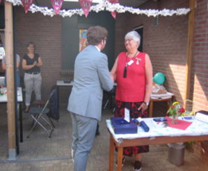 Burgemeester “Sebastiaan van ’t Erve” kwam speciaal om “DINY BEUMER” voorzitter van KV. Klein Dochteren in het zonnetje zetten.